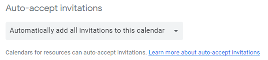 On the same page, in the Auto-accept invitations section, make sure that the option Automatically add all invitations to this calendar is selected: