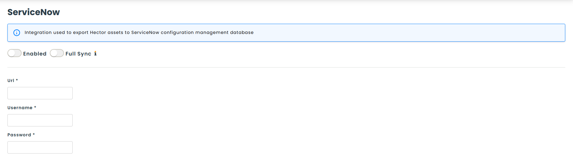 Sync Direction (Hector → ServiceNow): This integration is unidirectional. Hector is the source of truth and pushes data to ServiceNow. Changes made directly in ServiceNow are not pulled back into Hector.