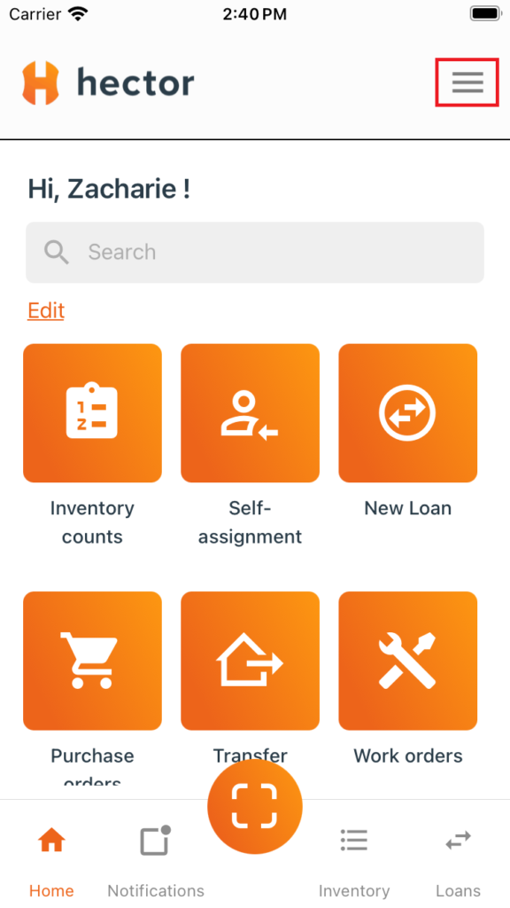 Once the setup is complete, you will be able to use your Zebra device to scan assets from the Hector application.