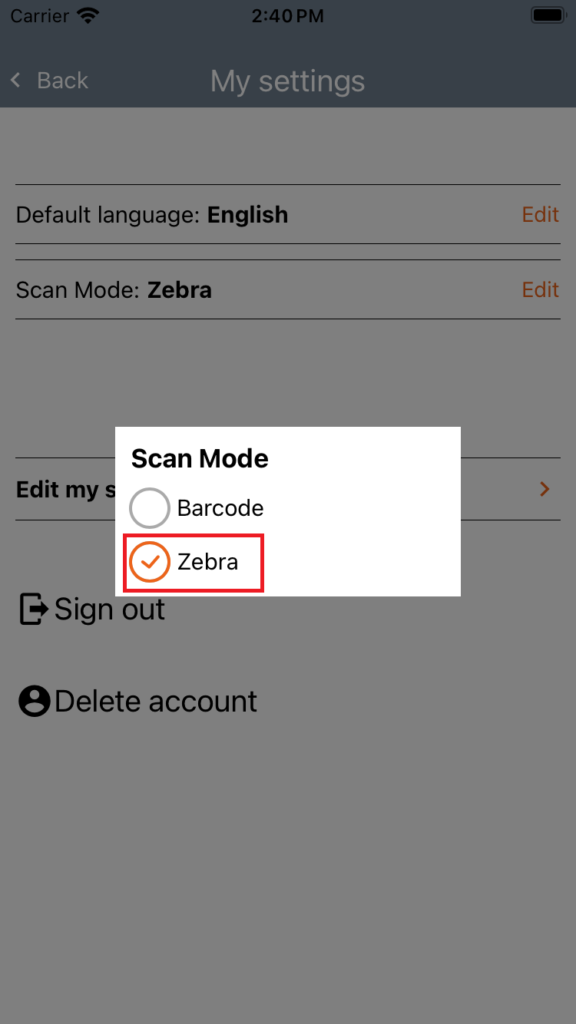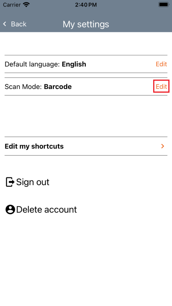 2. Tap Edit on the Scan Mode line.