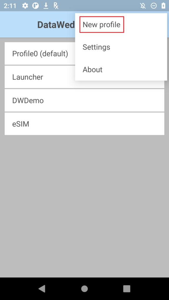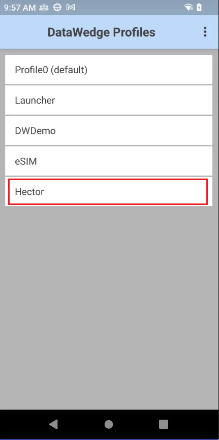 Note: If DataWedge was previously opened, it will reopen to the last screen used. If necessary, press BACK until the profile screen appears.