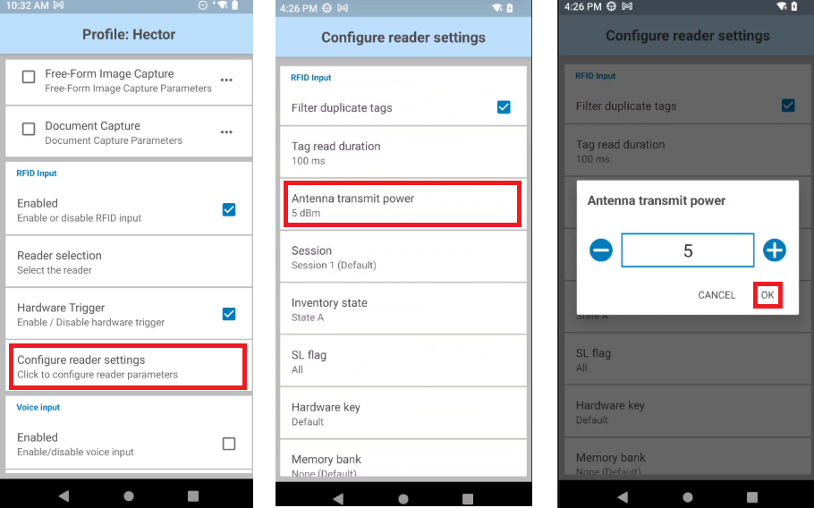3. Being able to directly configure the RFID scan power (scan range) in Hector?