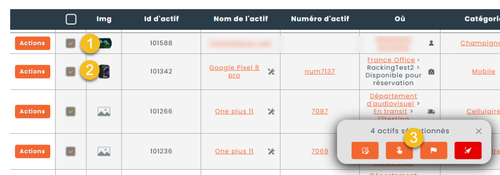 Vous pouvez également enregistrer l’utilisation d’un actif à l’aide d’un bouton disponible dans l’application. Pour ce faire, vous devez naviguer jusqu’à un actif ou sélectionner un ou plusieurs actifs dans une liste, puis cliquer sur le bouton Utilisation du poste.