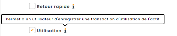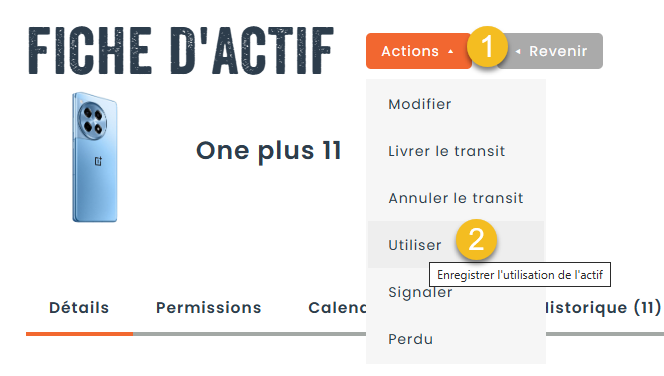 Vous pouvez également contrôler quels rôles peuvent voir le bouton d’utilisation dans la section Paramètres > Rôles > Inventaire > Actifs.