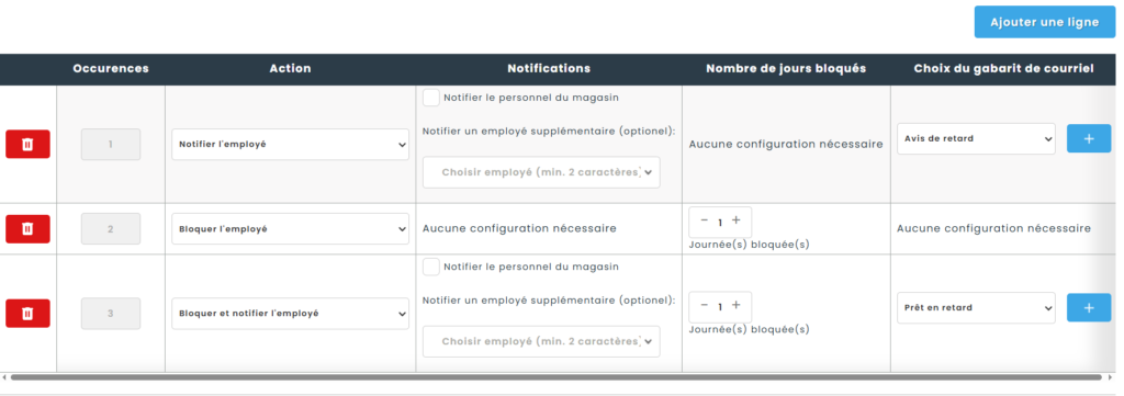 - Occurrences : en fonction du nombre de retards.
