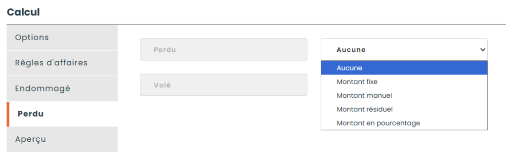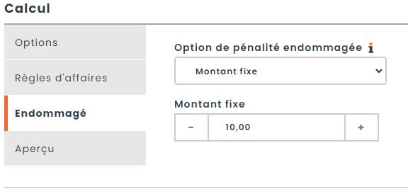 Il est également possible de définir une pénalité en cas de dommages matériels. Cinq options s’offrent à vous :