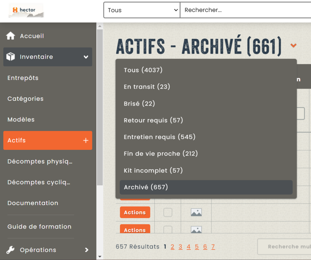 Lorsque vos articles atteignent la fin de leur cycle de vie ou pour toute autre raison nécessitant leur retrait de l’inventaire, Hector vous propose une solution d’archivage adaptée à vos besoins! Cet article vous permettra d’en savoir davantage sur les différentes options d’archivage d’un actif dans Hector.