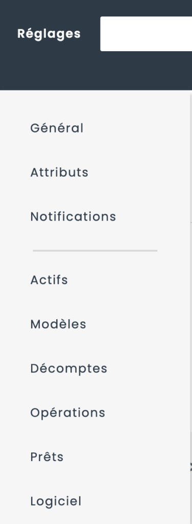Dans l’onglet « Réglages », cliquez sur « Actifs ».