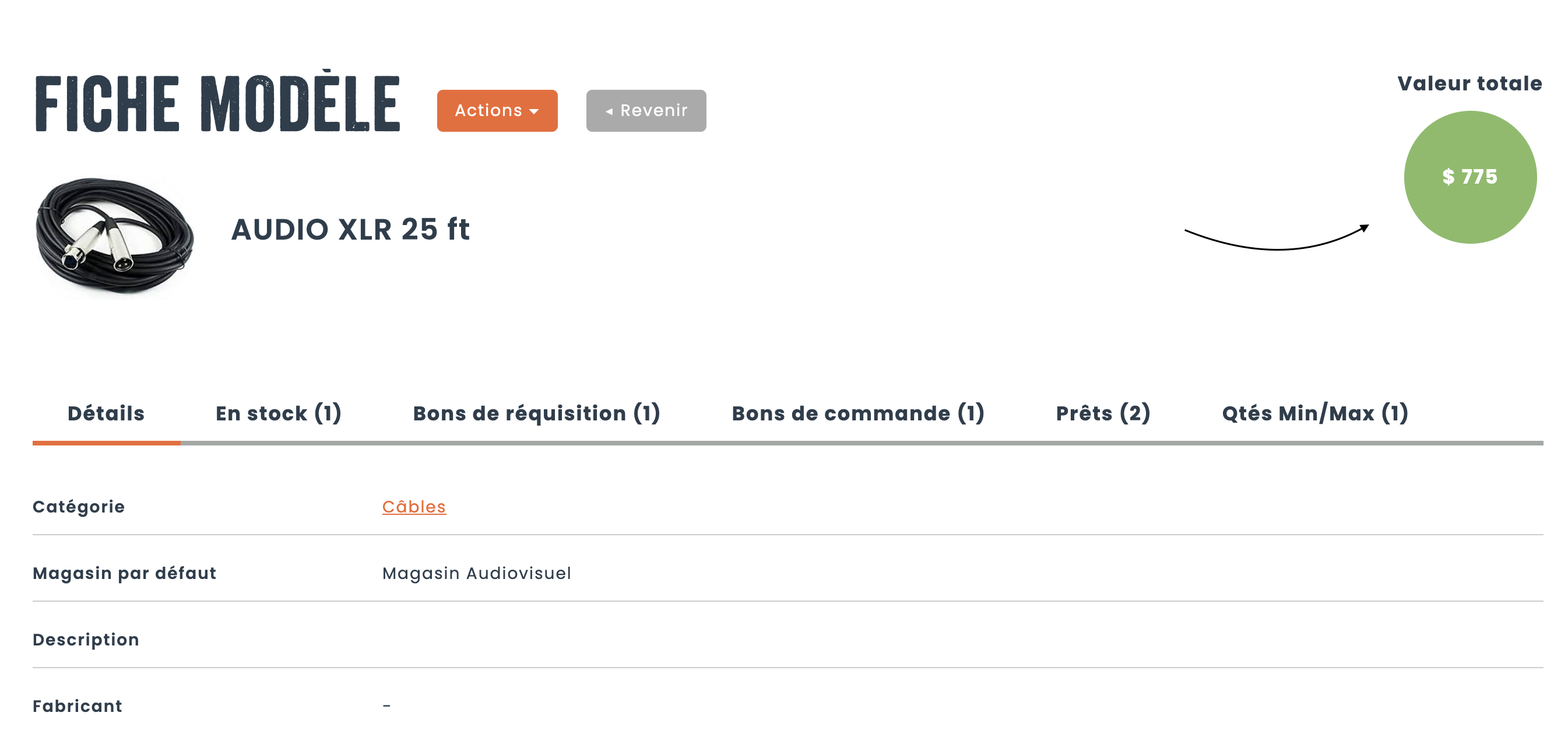 Par exemple, sur la fiche de catégorie, une valeur totale et/ou nette vont vous permettre de voir la valeur de vos actifs pour cette catégorie. La même vue est également disponible dans les magasins, les items, les utilisateurs et les endroits. Chaque affichage sera filtré en fonction d’où vous vous trouvez dans l’application.