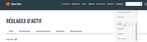 Une fois la sous-catégorie sauvegardée, vous pouvez créer un actif à partir de cette sous-catégorie en cliquant sur le bouton Actions et le bouton ajouter un actif.