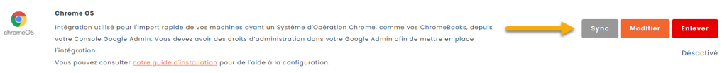 L’intégration Google Chromebook est maintenant connectée à votre instance Hector! Une synchronisation des appareils Chrome de votre organisation se fera automatiquement chaque jour et vous pouvez aussi en faire manuellement en appuyant sur le bouton «Sync».