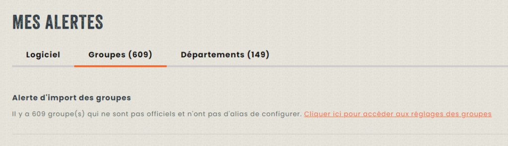 - La page d’accueil vous permet de savoir quels groupes ne sont pas configurés dans l’application.