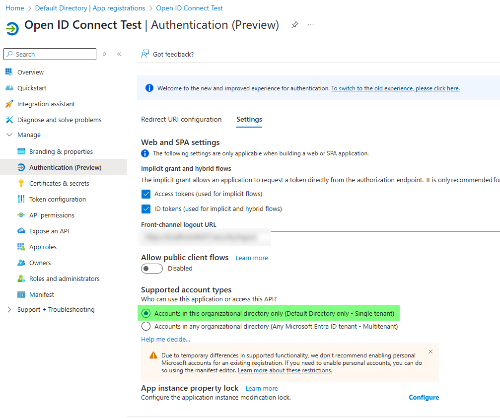 Before setting up Microsoft Azure, copy the Redirect Uri and Logout Uri as you will need them later.