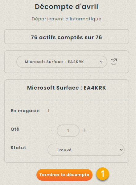 S’ils n’ont pas trouvé l’actif en question, ils peuvent choisir manquant et passer à l’actif suivant dans le décompte. N’oubliez pas que ce n’est pas le moment de jouer les détectives !