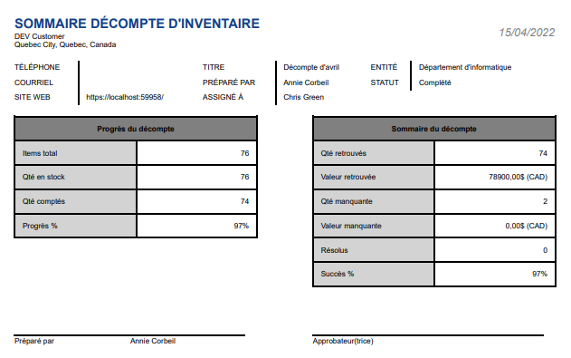 Une fois que votre comptage a été clôturé, vous pouvez générer des données autour du décompte à des fins de gestion.
