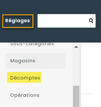 Il est possible de configurer différents paramètres pour les décomptes cycliques. Pour ce faire, naviguez dans le menu Réglages et cliquez sur la section Décomptes.