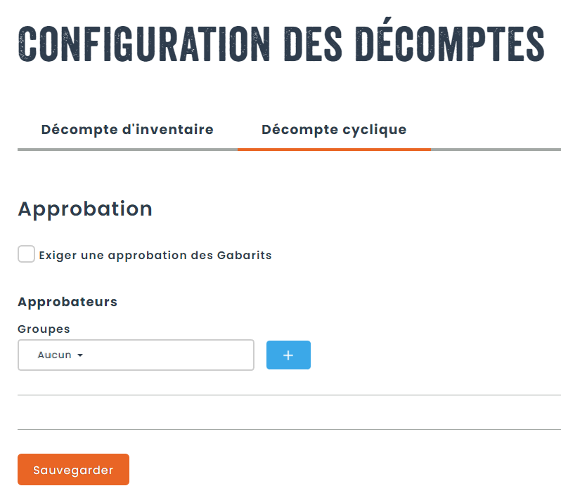 - Si vous souhaitez que vos modèles de décomptes soient approuvés avant de pouvoir être utilisés, vous pouvez mettre en place un processus d’approbation et spécifier un groupe d’utilisateurs autorisés à approuver les décomptes cycliques.