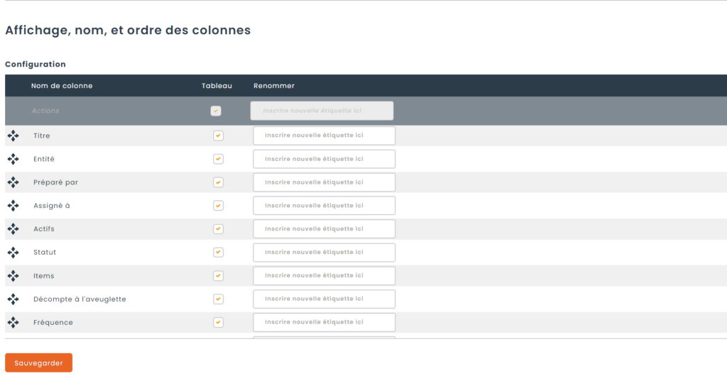 - Affichage, nom et ordre des colonnes