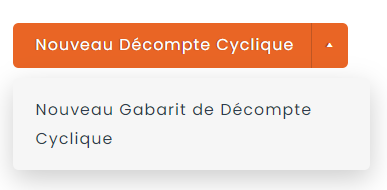 Une fois à l’intérieur, vous devriez voir une liste vide, et un bouton orange Nouveau Décompte Cyclique en haut à droite de l’écran. Cliquez sur la flèche et cliquez sur le bouton Nouveau Gabarit de Décompte Cyclique.