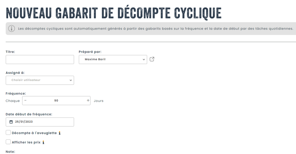 Une fois à l’intérieur, vous aurez la possibilité de configurer les options suivantes pour vos décomptes cycliques.